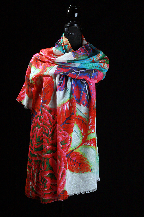 Frisch und stilvoll: Unser leichter Schal aus Leinen mit Baumwollanteil präsentiert große, ruhig-bunte Blumenmotive und verleiht jedem Outfit eine sportive Eleganz. Die natürliche Struktur des Leinens kombiniert mit weicher Baumwolle sorgt für ein angenehmes, luftiges Tragegefühl — ideal für Übergang und Sommer.