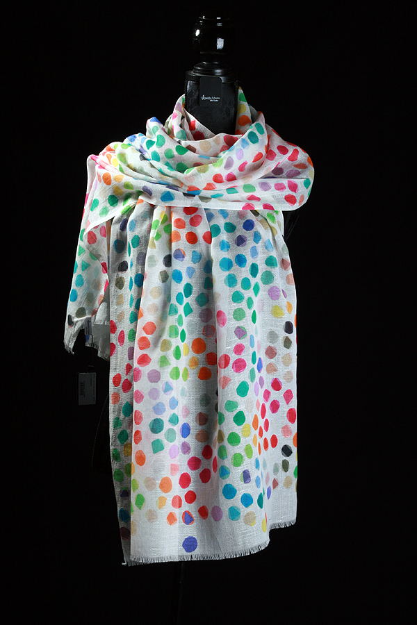 Fröhlich und leicht: Unser Schal aus Leinen mit Baumwollanteil zeigt große, lebhaft bunte Punkte und verleiht jedem Outfit eine sportlich-elegante Note. Die natürliche Leinenstruktur kombiniert mit weicher Baumwolle sorgt für ein luftiges, angenehmes Tragegefühl — ideal für Frühling, Sommer und Übergang.