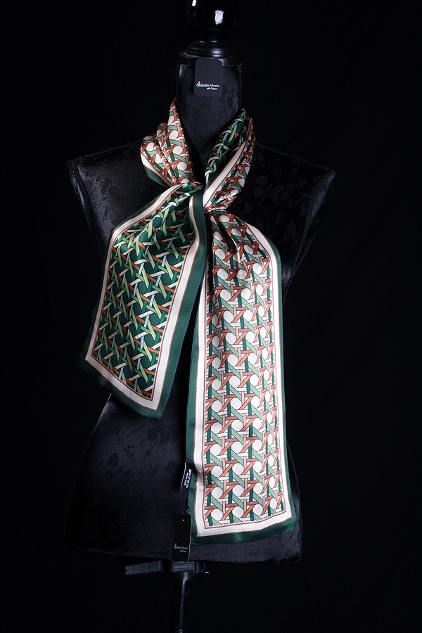 Schmal, sinnlich, überraschend vielseitig: Doppelseitig bedruckter Seidenschal in sattem Grün und warmem Braun. Aus hochwertiger Satinseide gefertigt, liegt er kühl und geschmeidig auf der Haut und verleiht jedem Outfit einen raffinierten Akzent. Stilvoller Blickfang — perfekt auch an warmen Tagen. Tragen. Staunen. Wiederholen.