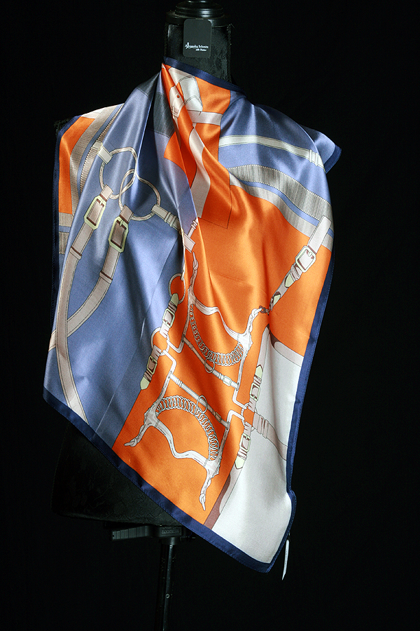 Quadratisches Seidentuch aus feiner Satinseide — angenehm weich auf der Haut, mit klaren Reitermotiven. Sehr elegant und moderner Hingucker, vielseitig tragbar mit vielen Drapiermöglichkeiten — verleiht jedem Outfit sofort edle Raffinesse.