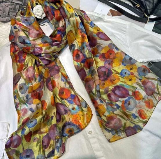 Die luxuriöse Ponge-Seide schmeichelt sanft Ihrer Haut und bietet ein angenehmes Tragegefühl, das Sie den ganzen Tag über genießen können. Ob du ihn lässig um den Hals trägst oder stilvoll über die Schultern drapierst – dieser Schal ist einfach schön und sorgt für einen frischen Touch, ganz gleich zu welchem Anlass.