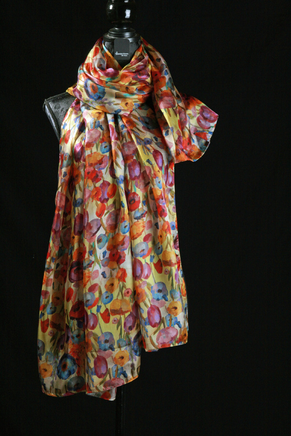 Entfalte deinen individuellen Stil mit unserem schicken Langschal aus zarter Ponge-Seide! Dieser wunderbare Schal begeistert mit einem kräftig frechen, bunten Blumenmotiv, das sofort ins Auge fällt und zum echten Hingucker wird. Die lebhaften Farben und dynamischen Muster bringen den Drang für Taten zum Ausdruck.