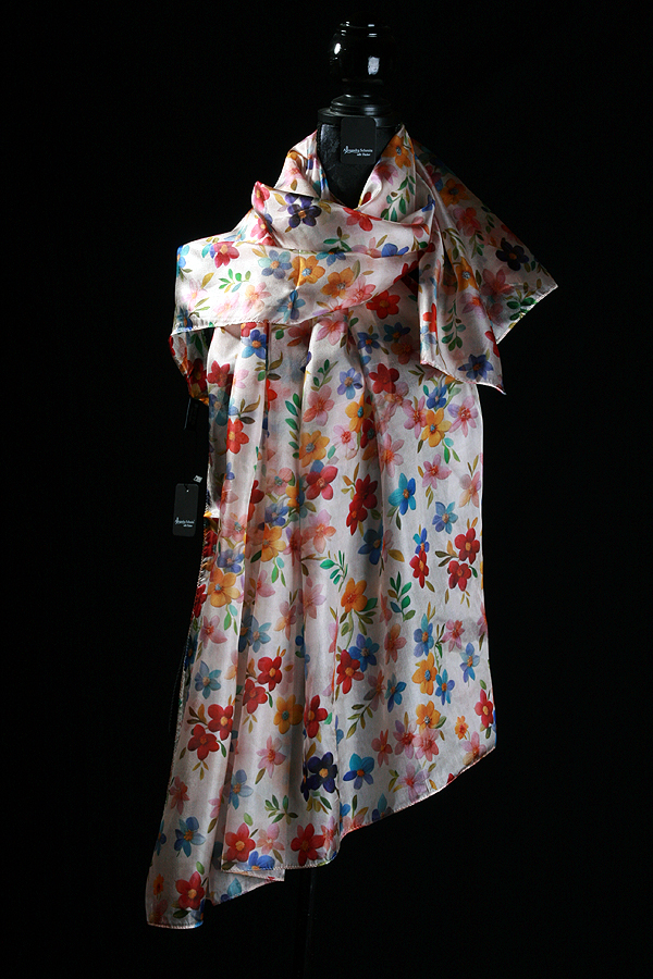 Leichter Pongee-Schal – bunte Blümchen, große Wirkung. Feinste Pongeseide liegt angenehm auf der Haut, luftig und knitterarm – perfekt für Frühling, Sommer und das Büro. Ob elegant drapiert oder sportlich geknotet: das fröhliche Blumenmuster verleiht jedem Look Frische und Charme.