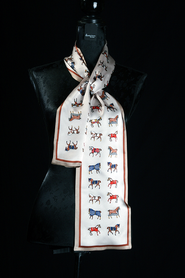Charmant und leicht: Schmaler, doppelseitig bedruckter Seidenschal mit bunten Pferdchen auf zart hellem Grund. Aus feiner Seide gefertigt, liegt er kühl und geschmeidig auf der Haut und verleiht jedem Outfit verspielte Eleganz — der stilvolle Begleiter, auch an warmen Tagen. Immer gut und geschmackvoll bekleidet.