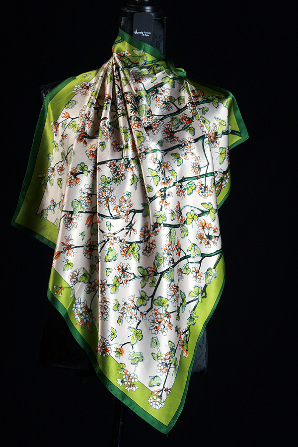 Quadratisches Seidentuch aus feiner Satinseide — zart wie ein Hauch, sanft auf der Haut. Feine, elegante Farben und ein filigranes Motiv: Schmetterling auf Baumblüten. Ein luxuriöser Griff, perfekter Fall und stilvoller Hingucker, der jedem Outfit eine feminine, zeitlose Note verleiht.